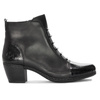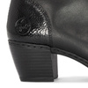 Obuwie niemiecko-szwajcarskiej firmy Rieker zachwyca oryginalnymi połączeniami, dbałością wykonania oraz modnym designem połączonym z wygodą i klasycznym stylem. Nowa propozycja tej marki to niezwykle wygodne i zapewniające dużo ciepła, cudowne botki. Cholewka została wykonana z czarnej, naturalnej skóry i lakierowanego tworzywa w kolorze czarnym. Wierzch cholewki ozdobiony sześcioma elastycznymi gumkami z metalowymi osłonkami, dzięki którym można dopasować obuwie do odpowiedniej szerokości. Na wewnętrznej stronie cholewki zamek ułatwiający zmianę obuwia. Lekko migdałowy, zgrabny nosek daje palcom dużo swobody i pozwala na wygodne ułożenie stóp. Świetnie wyprofilowana podeszwa z niewysokim, stabilnym obcasem wykonana z wysokogatunkowego tworzywa w połączeniu z wkładką "antistress" daje niesamowite poczucie komfortu i wygody. Wnętrze to mięciutki polar, który doskonale chroni stopy przed zimnem. Bardzo lekkie, niesamowicie wygodne, doskonale sprawdzą się w połączeniu nie tylko ze spodniami, ale także z sukienką czy spódnicą.