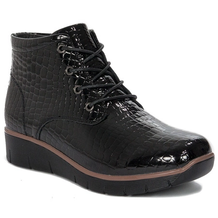 DBT3169/22 BKBotki marki Filippo to obuwie doskonałe na jesienne dni, które świetnie uzupełni nasz codzienny look. Cholewka z motywem gada w kolorze czarnym została wykonana ze skóry naturalnej lakierowanej oraz skóry wytłaczanej. Wnętrze jak i wkładka zostały pokryte miękkim i przyjemnym w dotyku polarem, która ma zapewnić naszym stopom optymalną temperaturę w zimowe dni. Zamek pozwala na łatwiejsze i szybsze zmienianie obuwia. Podeszwa to platforma w formie klina wykonana z wysokogatunkowego tworzywa jest dobrze wyprofilowana i wygodna. Całość detali składa się na wyjątkowy model buta, który idealnie dopełni wiele naszych stylizacji. Jeżeli jeszcze nie posiadasz takiego modelu w swojej garderobie nie zwlekaj z zakupem i zamów już dziś:)