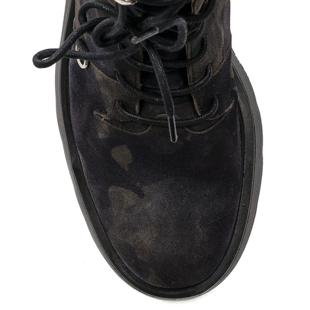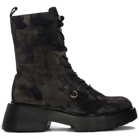 C-6711 JUNGLA NEGROPrezentowany model hiszpańskiej marki Wonders to niezwykle wygodne damskie botki. Cholewka została wykonana z miękkiej skóry naturalnej w kolorze moro (brąz i czerń). Wnętrze to wysokogatunkowe tworzywo oraz wkładka ze skóry, zapewniająca duży komfort i wygodę. Na wewnętrznej stronie cholewki zamek ułatwiający zmianę obuwia. Dodatkowo botki posiadają sznurowadła, które pozwalają dopasować cholewkę do wymaganej szerokości. Okrągły nosek daje palcom dużo swobody i pozwala na wygodne ułożenie stóp. Solidna, dobrze wyprofilowana podeszwa w formie platformy jest bardzo stabilna i świetnie izoluje od nawierzchni. Bardzo modne, niesamowicie wygodne, doskonale sprawdzą się w połączeniu nie tylko ze spodniami, ale także z sukienką czy spódnicą.