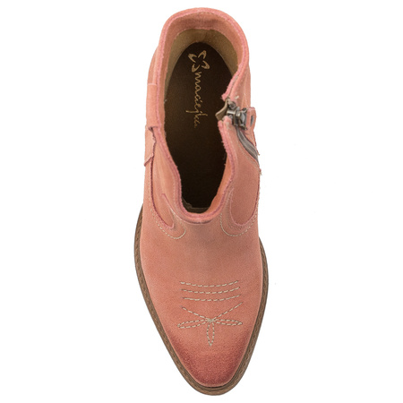 Maciejka Botki kowbojki damskie welurowe róż